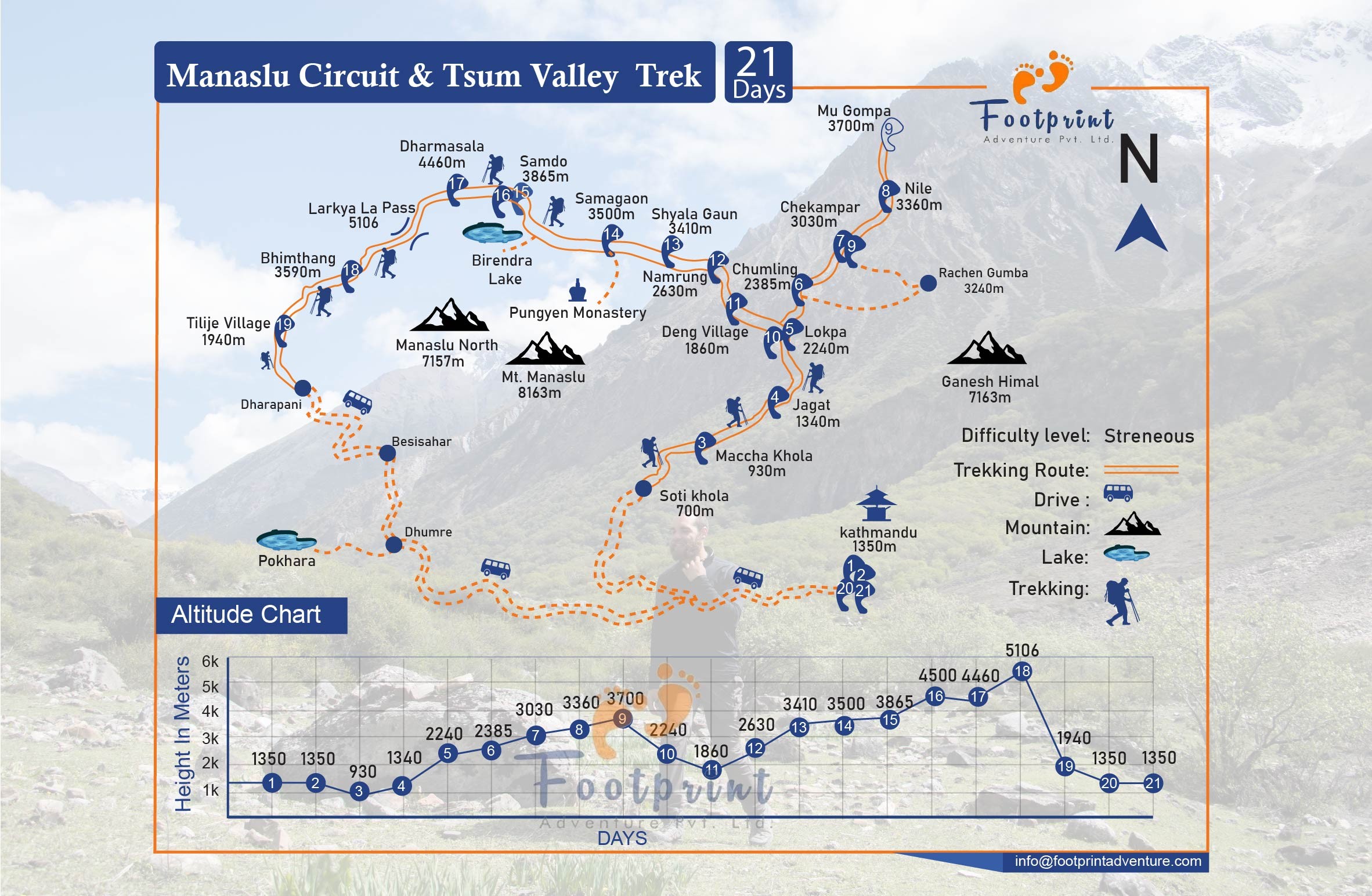 This is one of the most popular trek packages that Footprint Adventure puts together. We can customize the packages and itineraries according to your group's needs and preferences. For further inquiries, you can check out the complete guidebook for Manaslu Circuit and Tsum Valley Trek, or feel free to contact us.